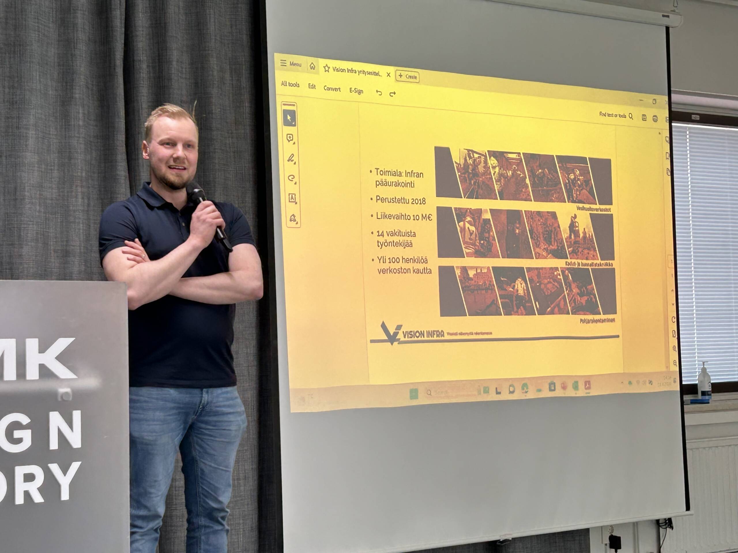 Hurraa-huuto myös HAMK Lepaan kampuksella sijaitsevalle rakennetun ympäristön koulutusohjelmalle, sillä he olivat liikkeellä katsastamassa, mitkä olivatkaan yritysten ajatukset teknologiasta ja kuinka XR-teknologiaa voitaisiin hyödyntää alan tulevien osaajien kouluttamisessa.