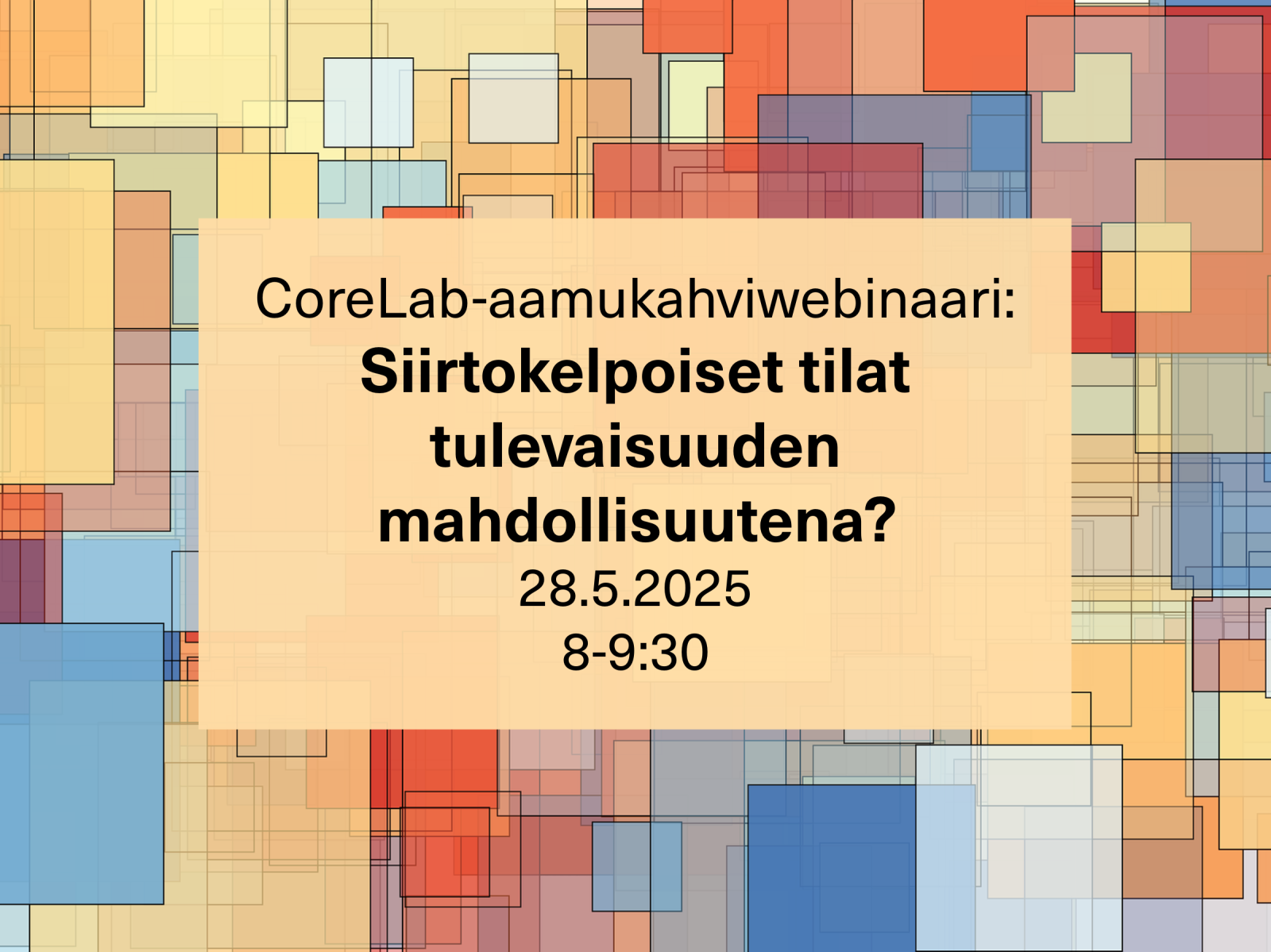 Webinaari järjestetään etänä Teamsin kautta, tallennetaan ja lisätään muiden webinaariemme joukkoon CoreLabin YouTube-kanavalle.