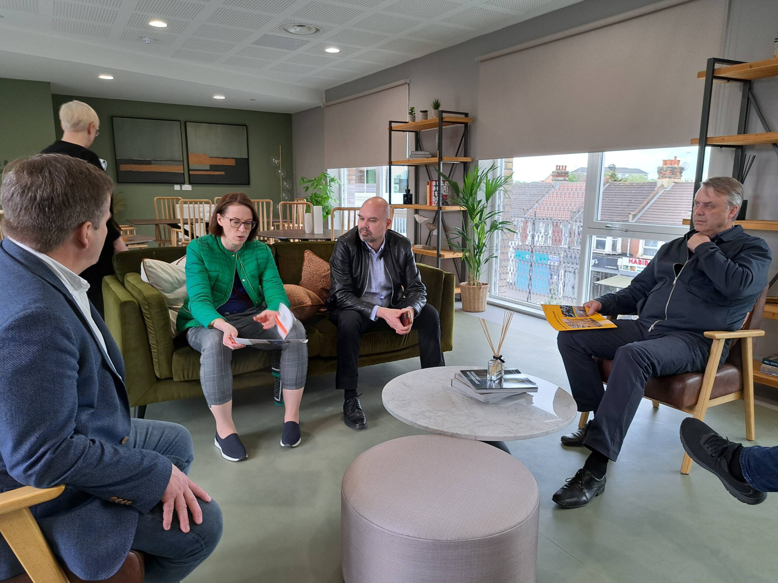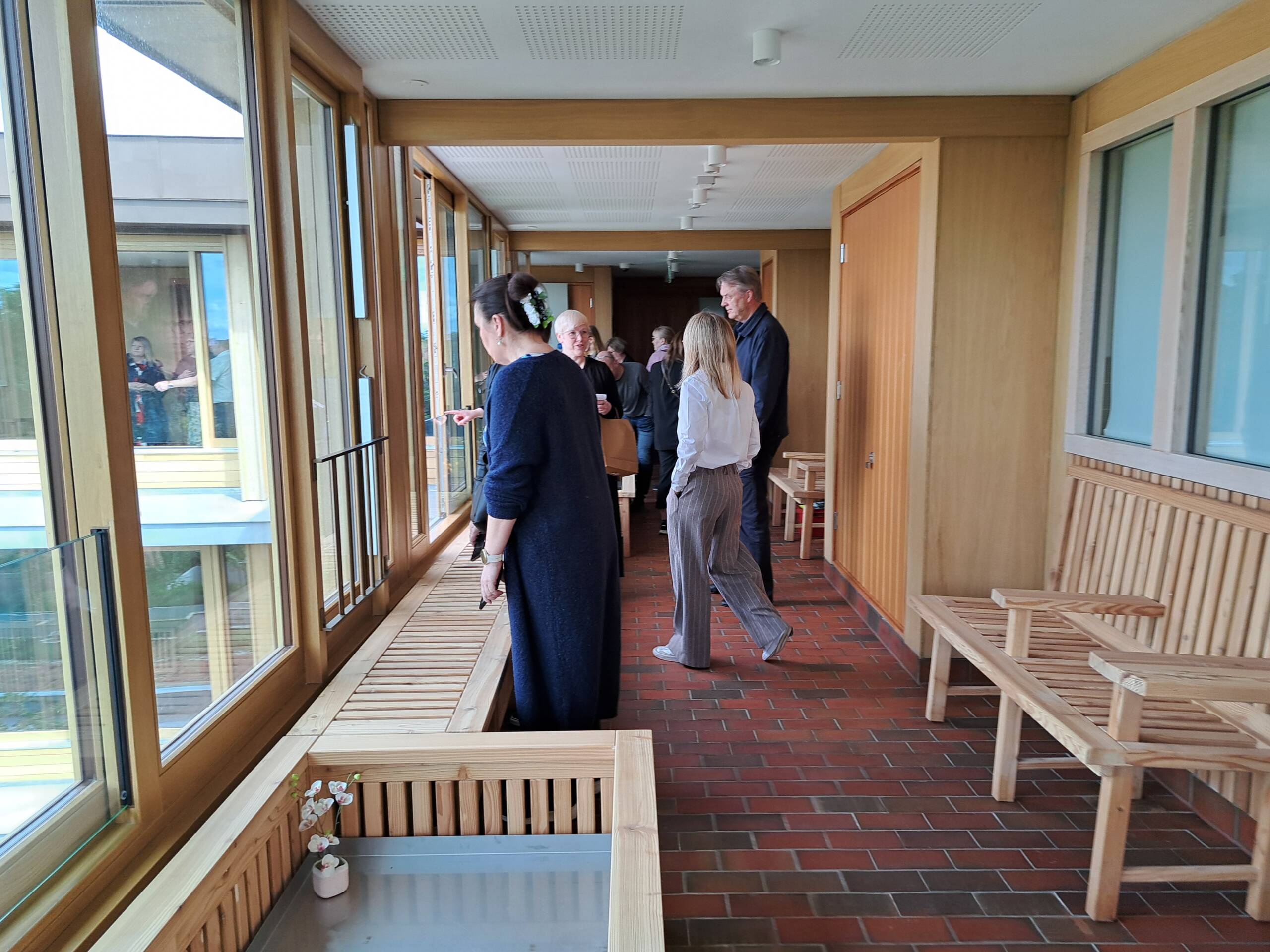 United St Saviour’s Charityn henkilökunta toivotti TULE:n tervetulleeksi Appleby Blue Almshouseen. He vastaavat kohteen toiminnasta ja ovat mukana tukemassa esimerkiksi elinkustannuksia. Laadukkaista materiaaleista valmistetussa rakennuksessa on tarjolla tilavia koteja yli 65-vuotiaille. Henkilökunta on asukkaiden itsenäisen elämän tukena samoin kuin Careline-hälytyspalvelu. Me näimme ensin kauniit näkymät sisäpihan puutarhaan alakerran yhteistilasta. Asukkaat voivat siellä osallistua erilaisiin aktiviteetteihin, joita talon henkilökunta järjestää. Talon yhteiset tilat mahdollistavat myös nuorempien lähiyhteisön jäsenten kokoontumisen Applebyyn.