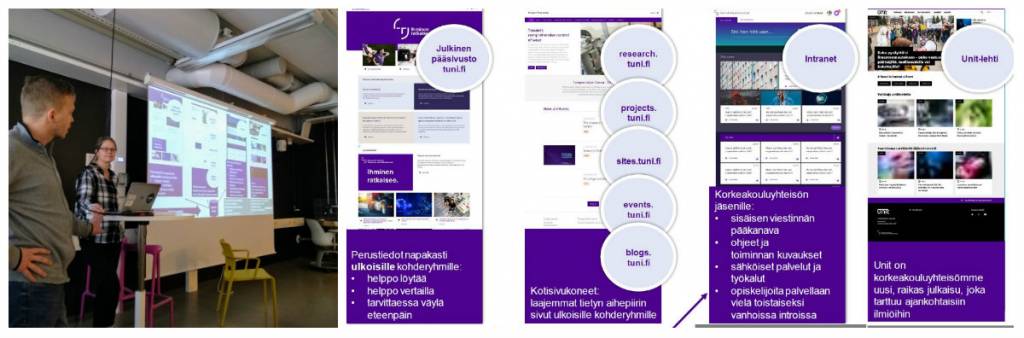 Huhtikuun tapaamisen varsinainen teema oli Viestinnälliset verkkopalvelut, joista digimentoreille saapuivat kertomaan Riikka Venetjoki ja Mika Puonti Viestintä, brändi ja markkinointi –yksiköstä. Verkkopalveluiden lisäksi he vastasivat digimentoreiden ennakolta keräämiin kysymyksiin. Tärkeää on tietää, mitä vaihtoehtoja on tarjolla tiedottamiseen ja viestintään, sekä erottaa minkälainen sisältö näihin eri ympäristöihin kuuluu. Esillä oli myös hengästyttävä lista tulevista toiminnoista ja ominaisuuksista, joita voimme palveluihin odottaa tulevina vuosina.