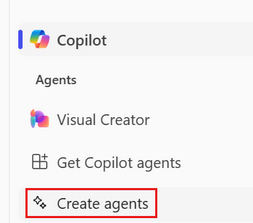 Go to Copilot Chat and see the bar on the right. The list shows the agents you have created before and the “Create Agent” button below them.