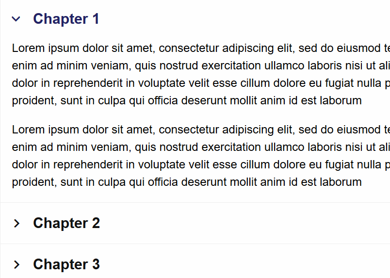 The Accordion is a way to reduce the amount of text presented to readers. The clickable headings expand and collapse to easily reveal and hide additional content.