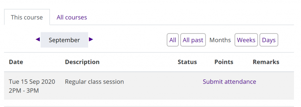 Attendance tool in Moodle: