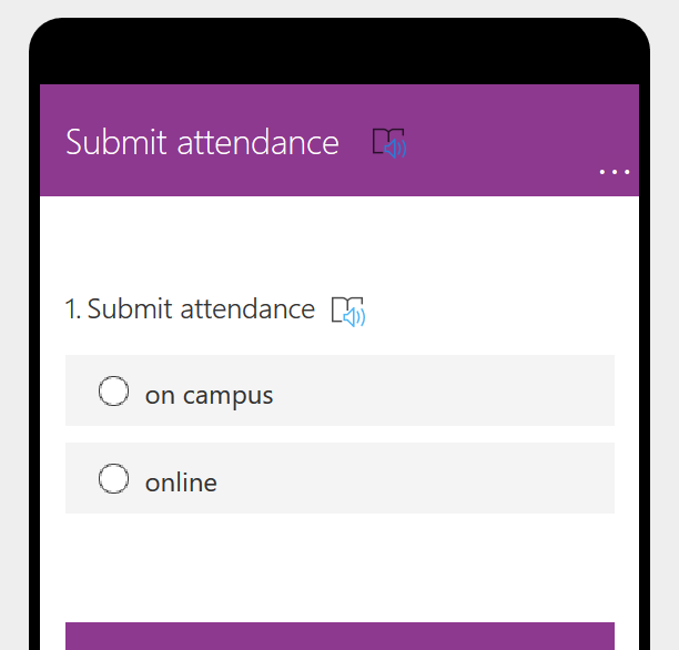 Forms, which is available in the O365 suite of applications, is a versatile tool for creating surveys and polls. Teachers can easily collect attendance data with a Forms survey that only includes a single question. Teachers can define that the respondents must sign in with their TUNI username and password, so they will not have to separately provide their names. Forms works well on mobile devices, too, so students can easily record their attendance using a smartphone.