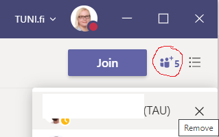 After the meeting the host must remove guests from the group chat. To do this, click the Participants icon on the top right corner of the chat section.