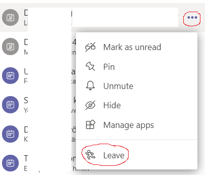 If you attend a recurring meeting as a guest, you can leave the chat yourself: click on the three dots next to the meeting name and select Leave.