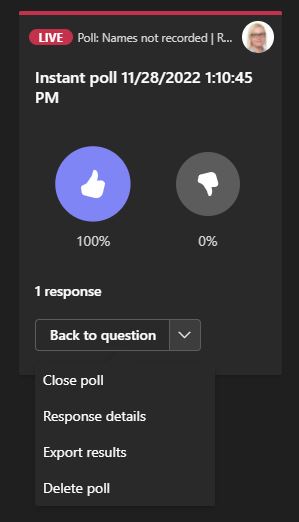 Instant polls in a Teams meeting are quick ways to collect the opinion of a large group of participants or to vote among the group. The result of a poll or vote is easy to share with participants.