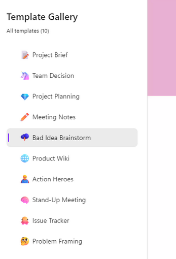 When you create a new page, you can start from a blank page or choose a template. You see a few of the most common suggestions at the bottom of the page or choose more ready-made templates from the template bases section. For example, the meeting notes template already includes the most common elements that are usually filled out from meetings.