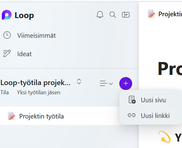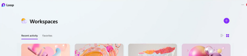 On the Loop homepage, you see the workspaces you have created or shared with you. From the + sign in the top right corner, you can create a new space.