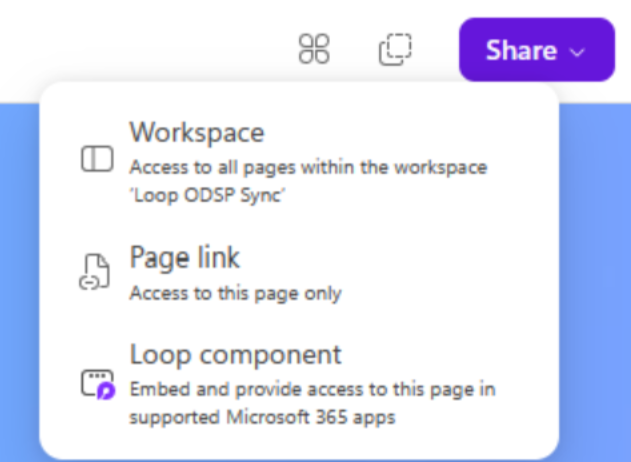 Each Loop component added to the page has its own address, so you can pick up the component’s address and add it to, for example, a meeting invitation email, etc.