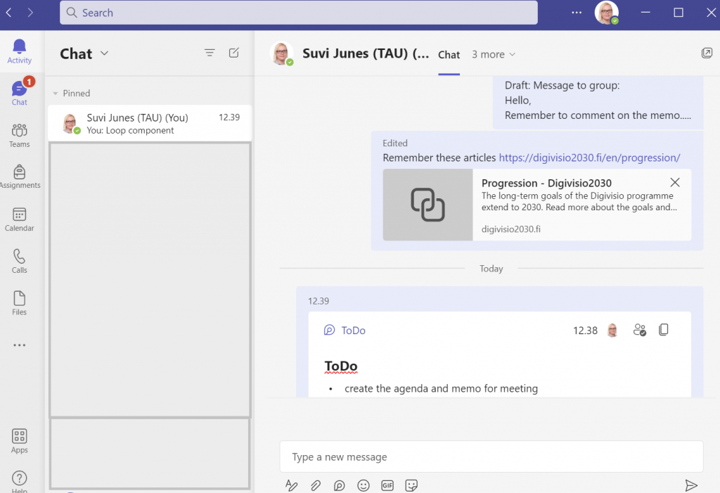 You can also add a Loop component to chat. It’s a memo that you can edit multiple times. For example, you can add a daily to-do list or things to remember.