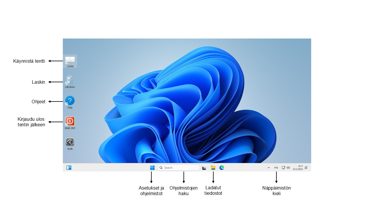 - Asennus: Hyväksytyt ohjelmat asennetaan kaikkiin tenttitiloihin ja kaikille tenttikoneille.
