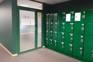Tila sijaitsee Päärakennuksen 1. kerroksessa kielikeskuksen vieressä. Säilytyslokerikot sijaitsevat tilan eteistilassa, ja niiden e-Smart lukot toimivat kaikilla yleisillä korteilla:, joiden e-Smart lukot toimivat kaikilla yleisillä korteilla: pankkikortti, kirjastokortti, bussikortti, salikortti ja yleisimmät kulkutunnisteet ja -tagit. Huom. e-Smart lukko ei toimi passilla, henkilökortilla, älypuhelimella tai Americcan Express -kortilla.