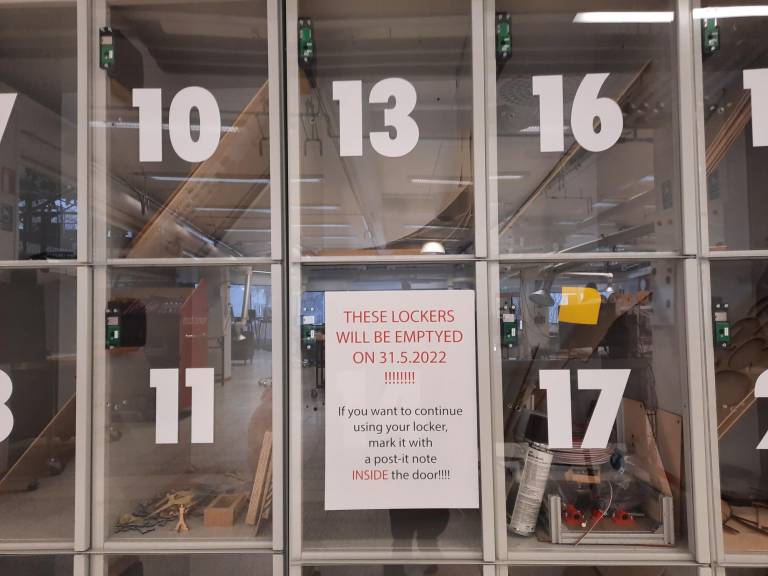 FabLabin lokerikot - käy merkkaamassa lokero, mikäli haluat pitää sen