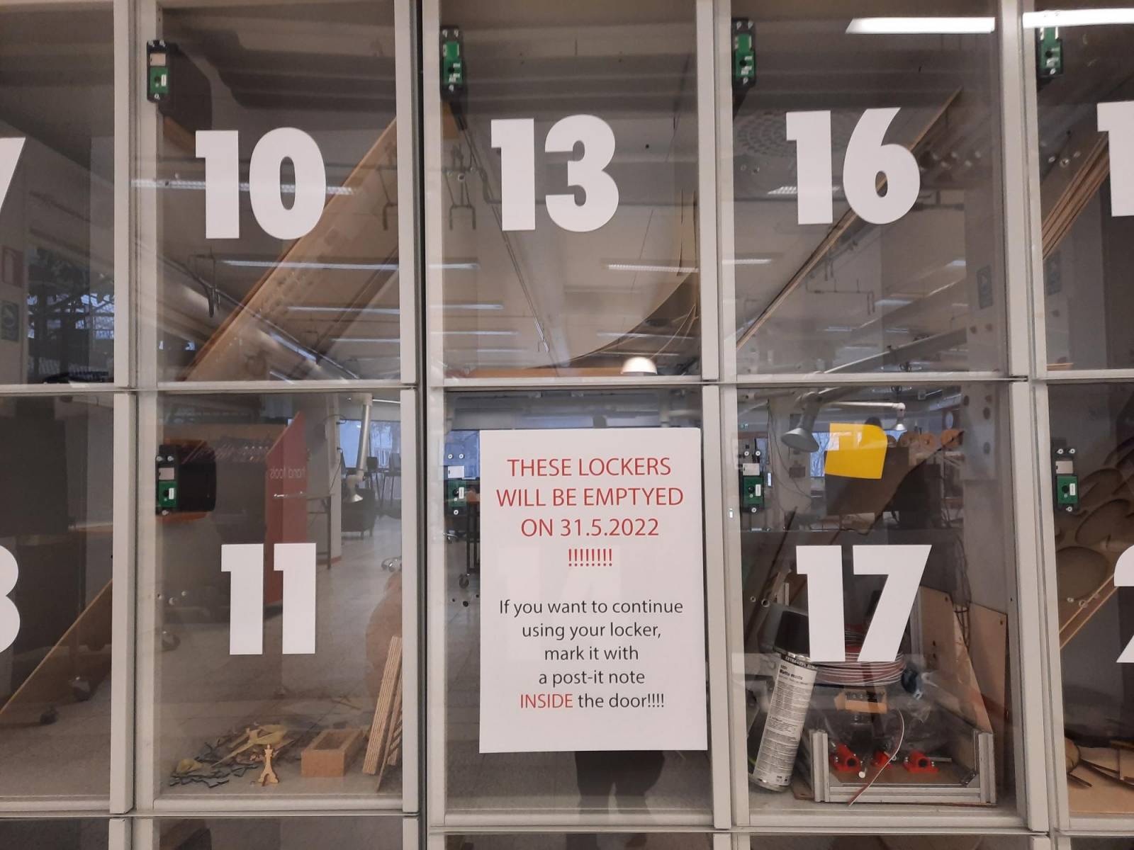 Merkkaamattomat lokerikot tyhjennetään ja lokeroiden tavarat hävitetään 1.6., jotta saadaan lokerot tehokkaaseen käyttöön taas syyslukukaudella!