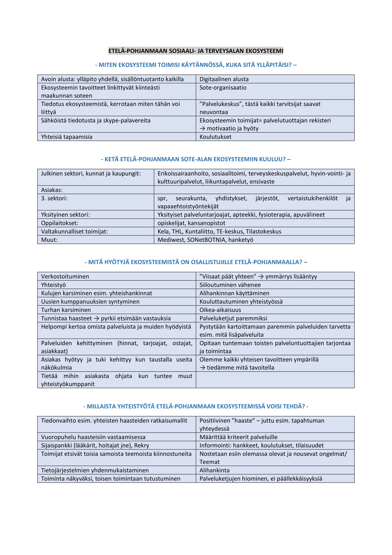 Alla olevan koosteen avulla voit tutustua paremmin Etelä-Pohjanmaan ekosysteemin käytäntöjen ja rakenteiden ideointiin.