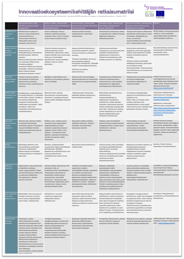 Innovaatioekosysteemikehittäjän ratkaisumatriisi