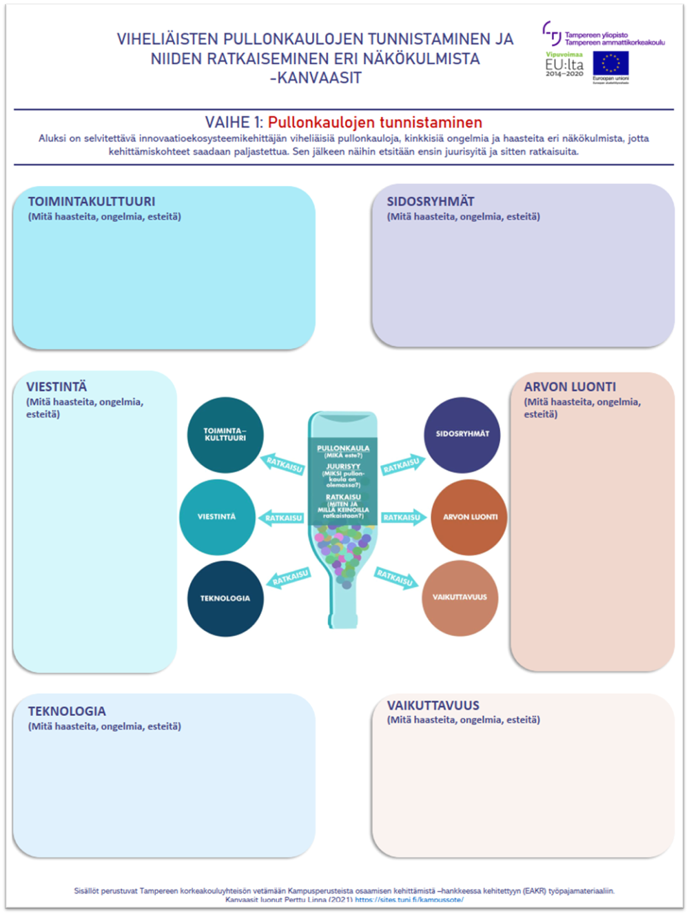 Viheliäisten pullonkaulojen tunnistaminen ja niiden ratkaiseminen eri näkökulmista -kanvaasit