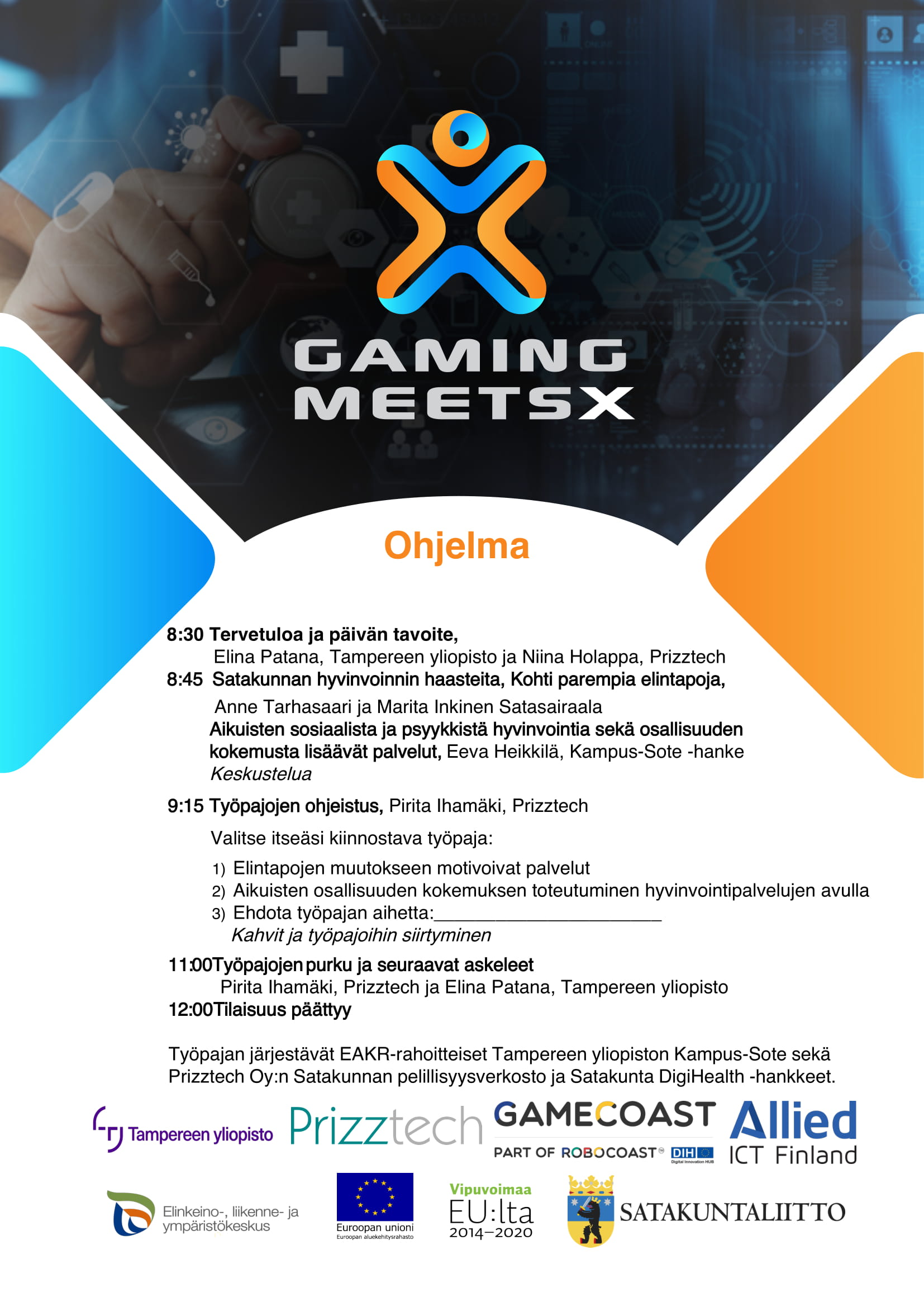 Kuva: Gaming Meets X -haaste -tapahtuman ohjelma.