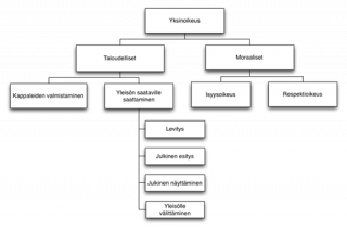 - Respektioikeus: velvollisuus kunnioittaa teosta niin, että sitä ei muunnella tekijää loukkaavalla tavalla