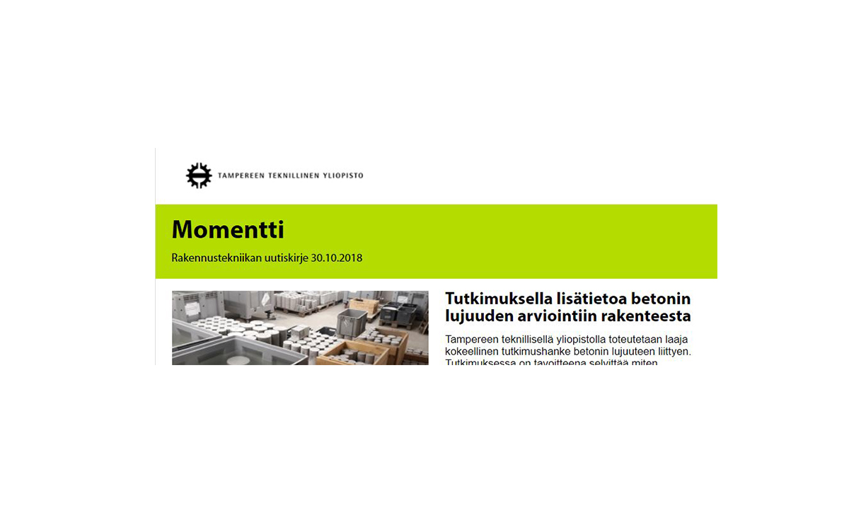 - Tutkimuksella lisätietoa betonin lujuuden arviointiin rakenteesta 15.10.2018