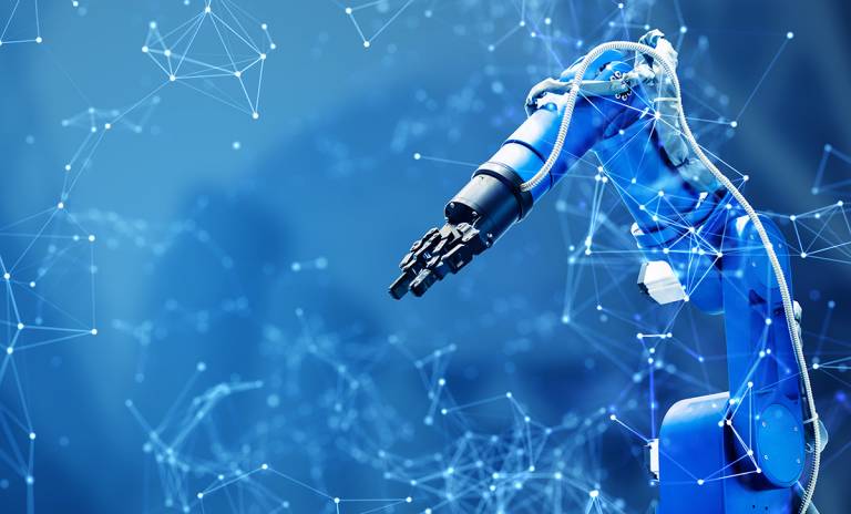 Robot arm and communication network concept. Industrial technology. INDUSTRY4.0.