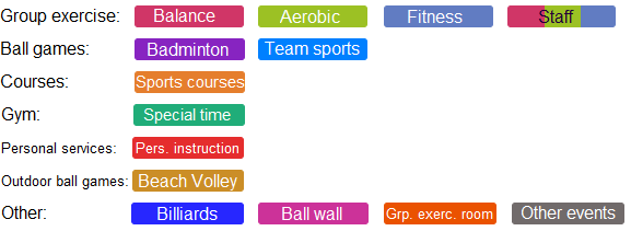 Some of the classes and courses are instructed in English. Check the language of instruction at the information box of the event. The starred classes (*) are group exercise classes we recommend for beginners also.