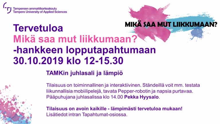 Mikä saa mut liikkumaan -hankkeen päätös 30.10. TAMKilla