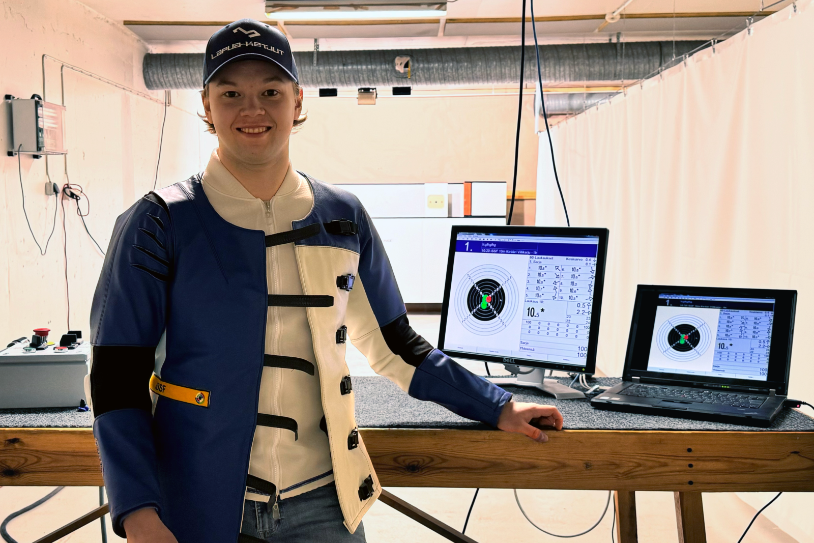 – Täällä harjoittelen liikkuvaa maalia, ampumaurheilua. Harjoitteluun kuuluu ampumaharjoittelu sekä oheisharjoittelu, kuten kuntosali ja lenkkeily. Olen käynyt pelaamassa paljon sulkapalloa ja pelannut jääkiekkoa nuoresta asti.