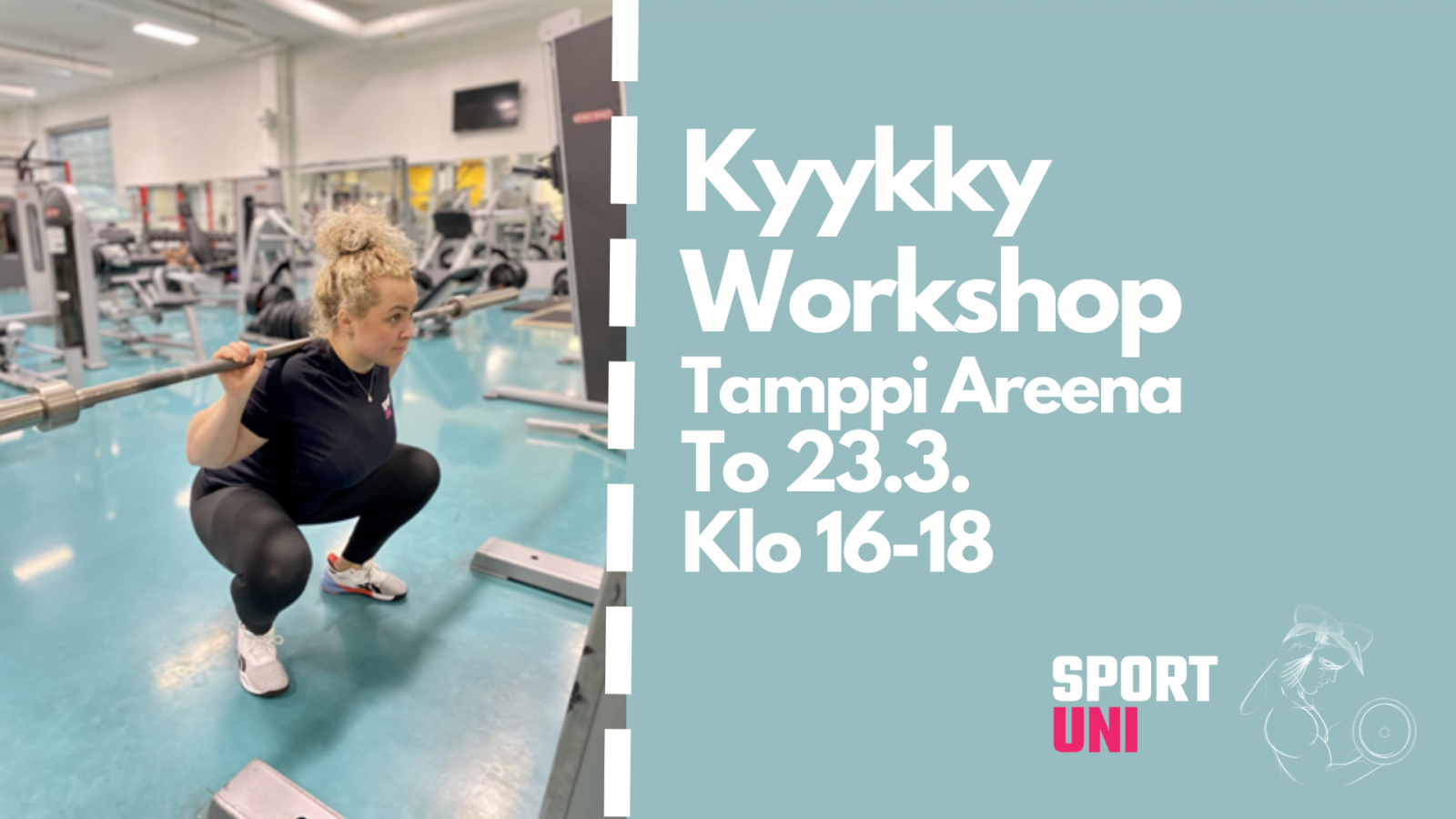Osallistuminen ei vaadi ilmoittautumista ja paikalle voi tulla milloin vain kello 16 ja 18 välillä. Paikalla ohjaamassa on fysioterapeutti ja voimanostaja. Workshopissa saat yksilöllistä ohjausta ja vinkkejä omaan kyykkytekniikkaan. Workshoppiin voi osallistua treenitaustasta riippumatta kuka tahansa, eli et tarvitse aikaisempaa kokemusta kyykkäämisestä tai salitreenaamisesta ylipäänsä! Ota mukaasi treenivaatteet ja salitreeniin soveltuvat kengät.