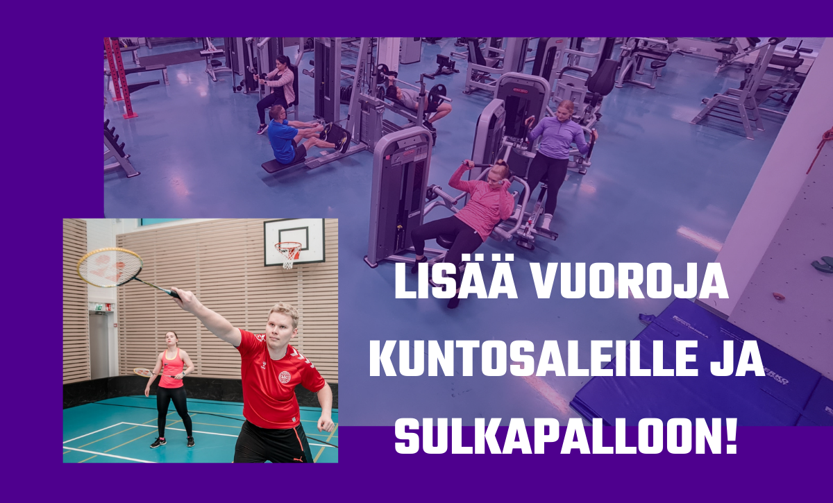 Koronatilanteen helpottaessa avaamme SportUnin kuntosaleille ja sulkapalloon enemmän vuoroja maanantaista alkaen. Edelleen tulee noudattaa hygieniaohjeita SportUnin tiloissa.