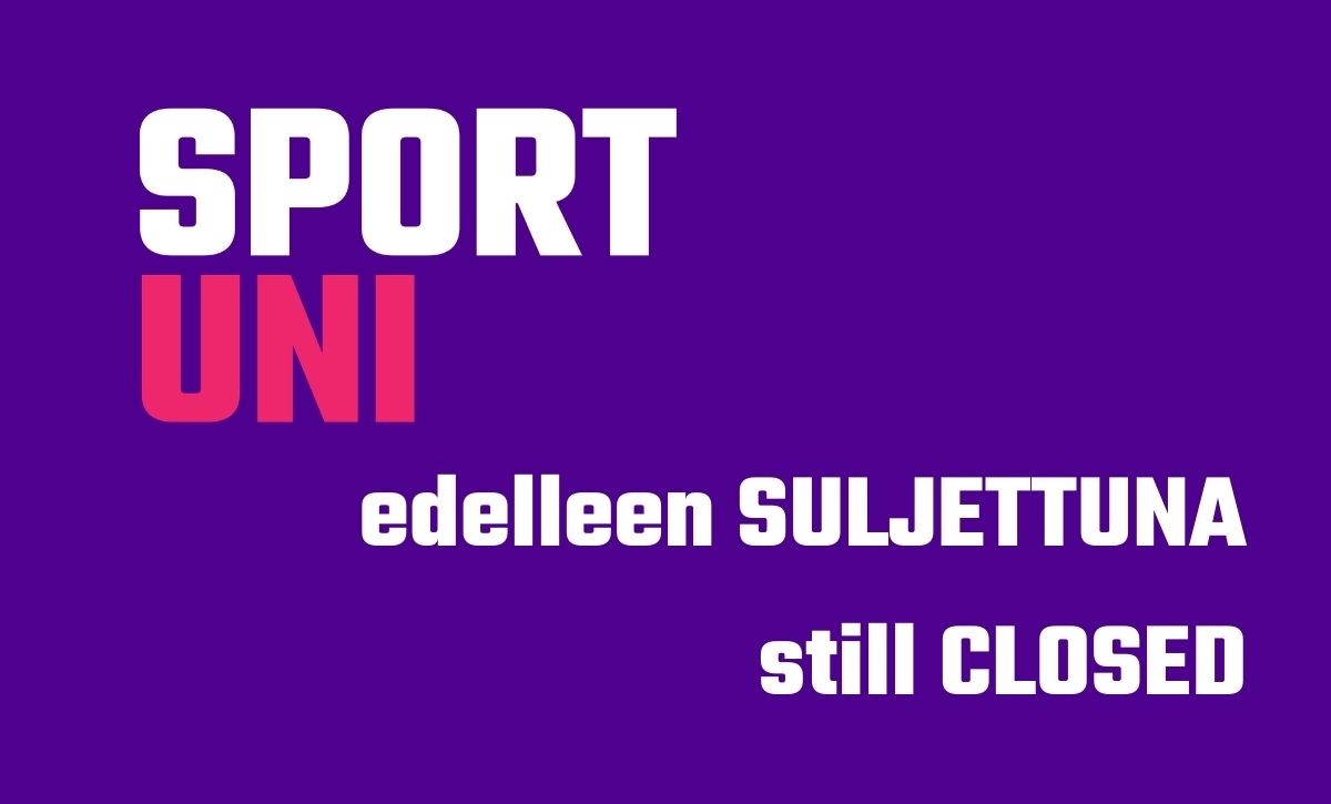 SportUnin liikuntakeskukset pysyvät suljettuina vuoden vaihteen jälkeen koronatilanteesta johtuen. Liikuntakeskukset ovat suljettuina toistaiseksi, mutta asiaa tarkastellaan koko ajan.