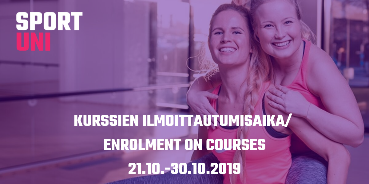 Kursseille ilmoittaudutaan SportUnin nettisivuilta. Löydät ilmoittaudu-linkin kurssin tiedoista ja se avautuu ilmoittautumispäivänä. Kursseille ilmoittaudutaan yksitellen kunkin kurssin kohdalta.