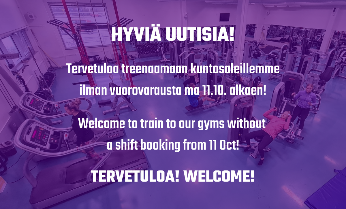 Maanantaista 11. lokakuuta alkaen pääset treenaamaan SportUnin kuntosaleille ilman vuorovarausta. Myös avoimille palloiluvuoroille ja kiipeilemään voi tulla ilman ajanvarausta.