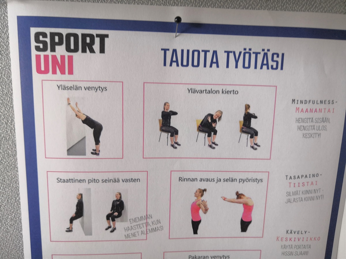 SportUnilla teimme työn tauottamiseen viikko-ohjelman:
