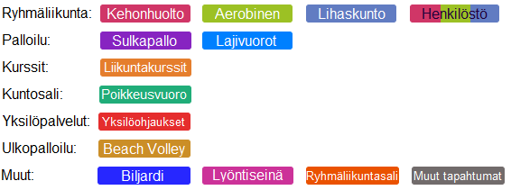 Kuntosali, avoimet palloiluvuorot, vakiovuorot ja livestream-tunnit eivät vaadi ilmoittautumista.