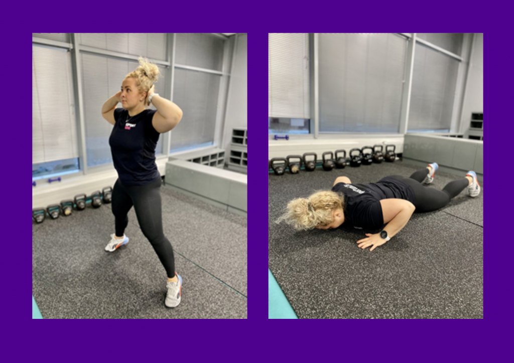 Lähde maasta päinmakuultaan, kädet hartioiden tasossa maassa, varpaat lattiassa. Ponnista maasta kyykkyyn käsien ja jalkojen varaan, josta nousu ylös asti varpaiden varaan, kädet vieden ylös takaraivolle. Ylhäältä takaisin aloitusasentoon samaan tapaan. Tee liike räjähtävästi.