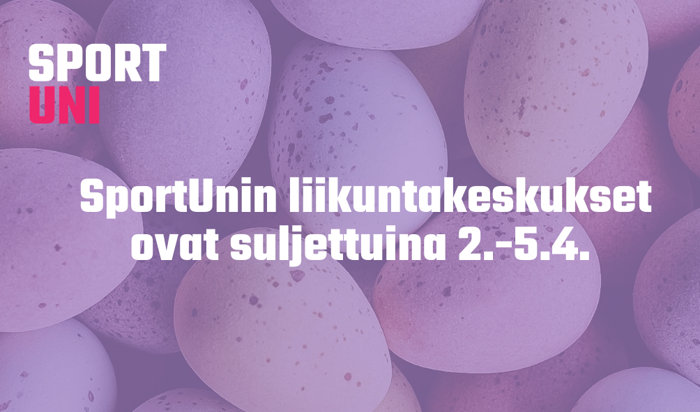 SportUnin liikuntakeskukset ovat suljettuina pääsiäisenä 2.4.-5.4.