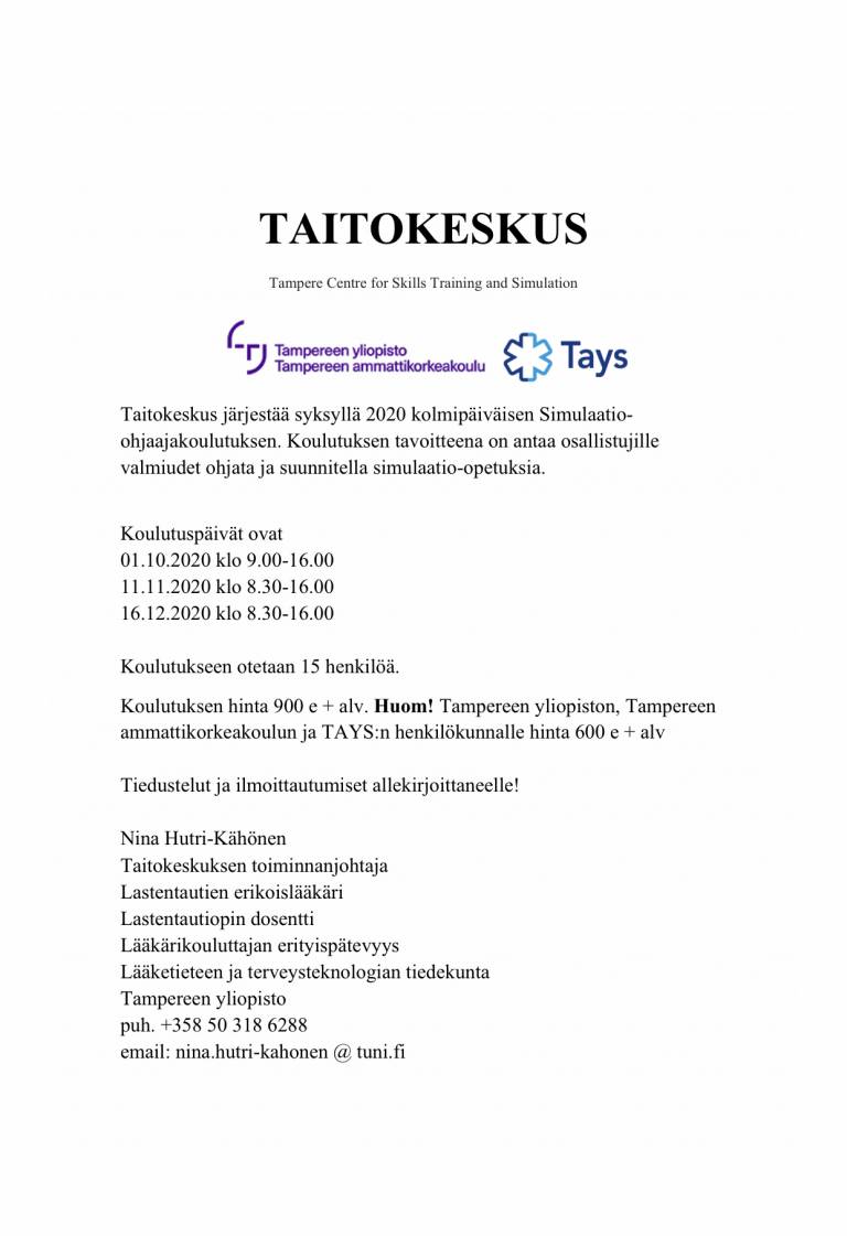 Simulaatio-ohjaajakoulutus syksyllä 2020