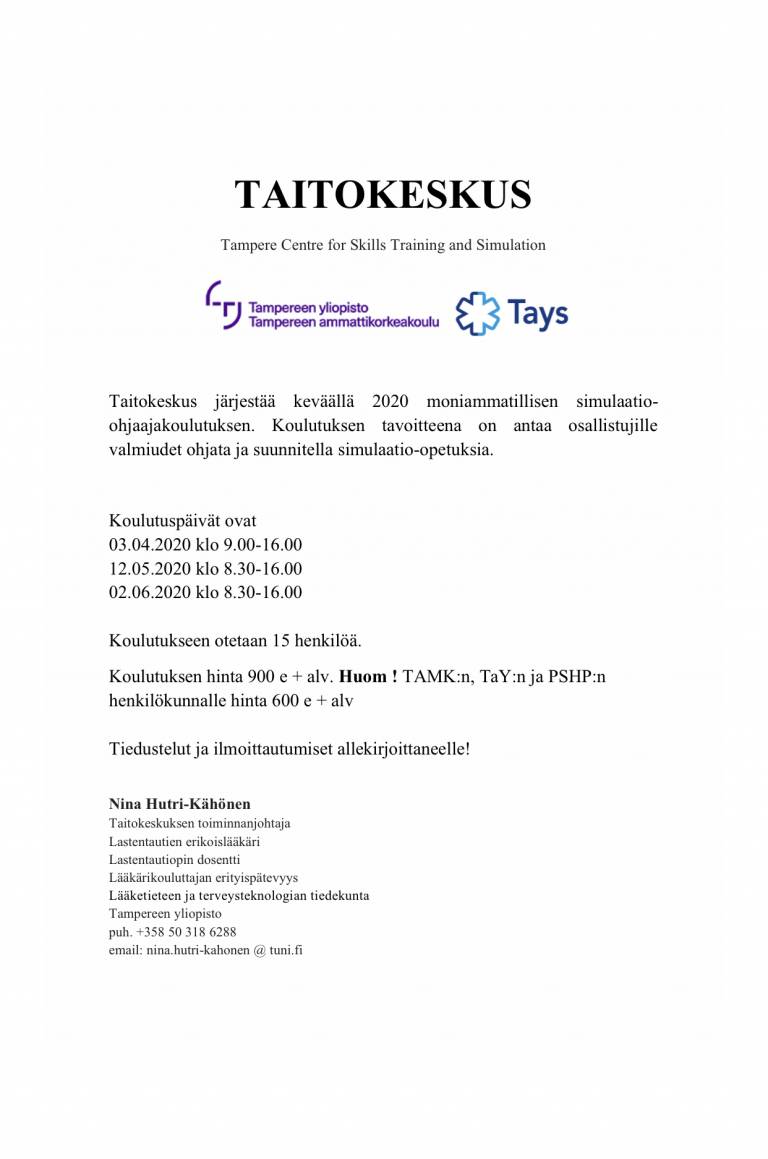 Taitokeskus järjestää keväällä simulaatio-ohjaajakoulutuksen