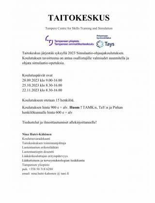 Simulaatio-ohjaajakoulutus syksyllä 2023 Taitokeskuksessa