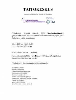Simulaatio-ohjaajien jatkokoulutus syksyllä 2023 Taitokeskuksessa