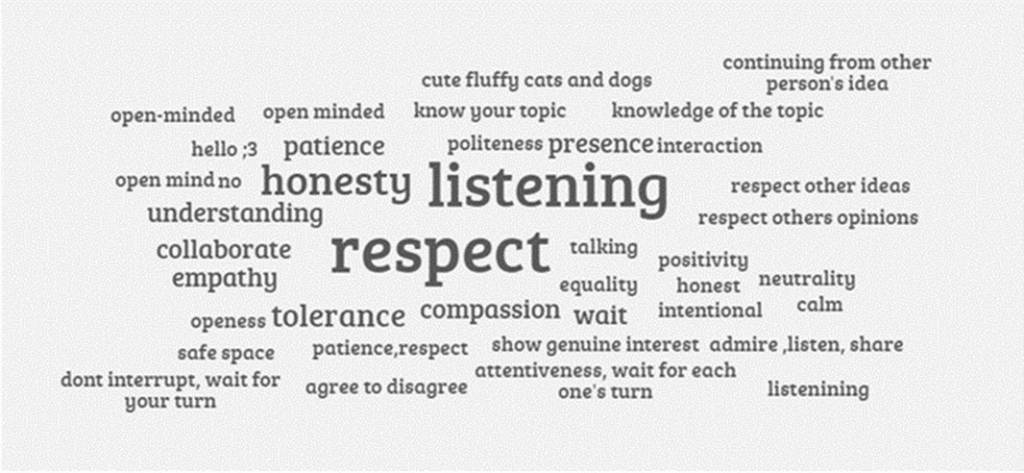 Kuva 1 Opiskelijoiden ajatuksia dialogisuuden käsitteistä (kesä 2021).