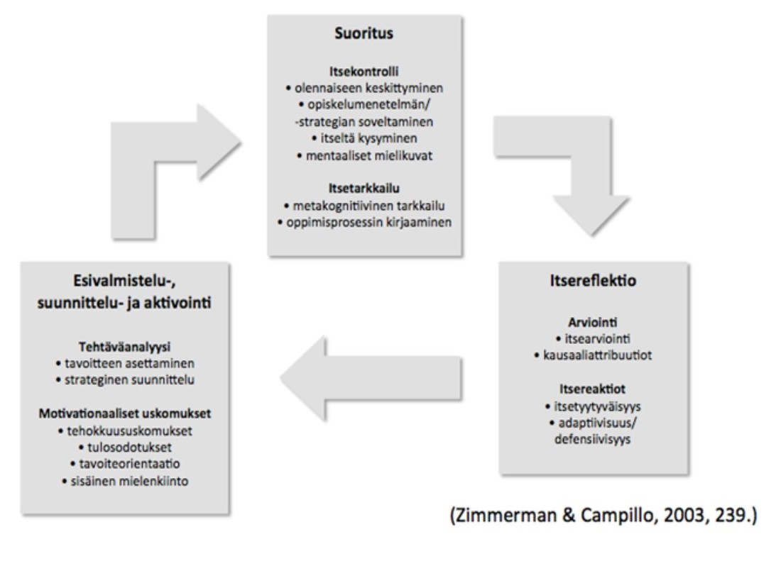 Kuva 1 Itsesäädellyn oppimisen kehä (Zimmerman & Campillo 2003)