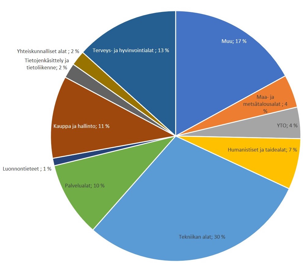 Kuva 1 Vastaajien jakauma tutkintoaloittain