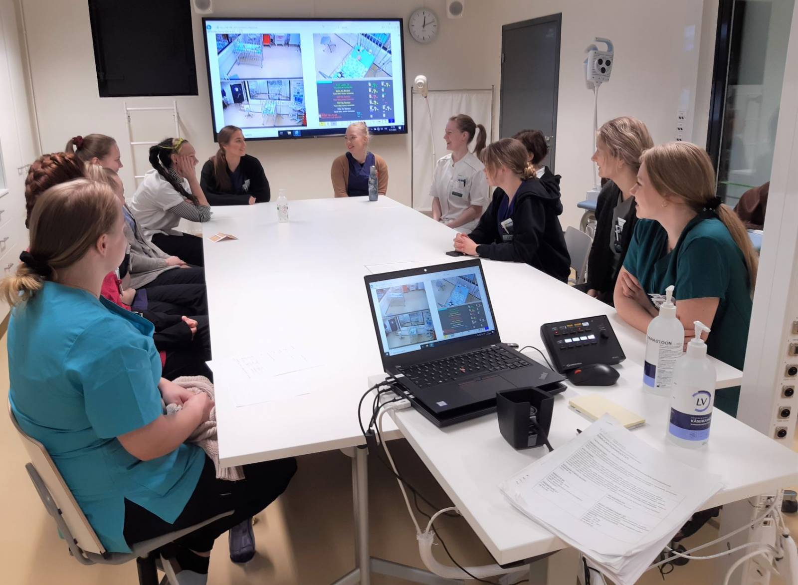Keväällä 2021 pidimme Simulaatio 1 -opintojakson Tampereen ammattikorkeakoulun terveysalan opiskelijoille, jotka olivat opintojensa keskivaiheen loppupuolella. Opiskelijat osallistuivat 18 simulaatioon, ja niiden aihealueita olivat sisätautien hoito, kirurginen hoitotyö, mielenterveys- ja päihdehoitotyö, perioperatiivinen hoitotyö, lasten ja nuorten hoitotyö sekä hätäsimulaatiot. Vallitsevan koronatilanteen vuoksi simulaatiot toteutettiin poikkeuksellisesti siten, että tarkkailijoina toimiville opiskelijoille oli annettu mahdollisuus osallistua simulaatioihin etäyhteyden avulla.