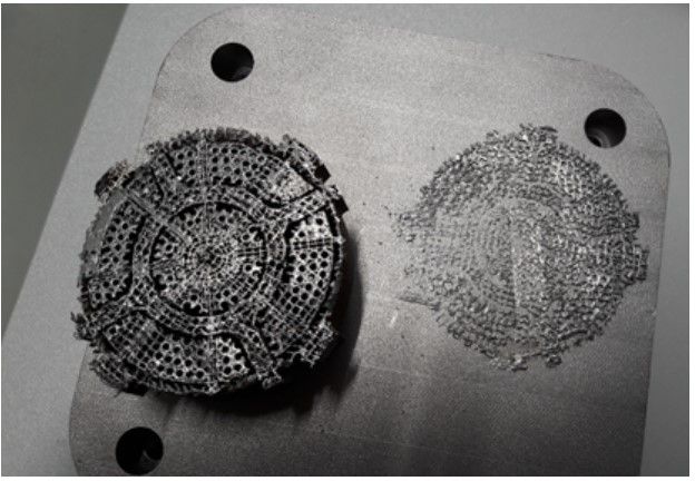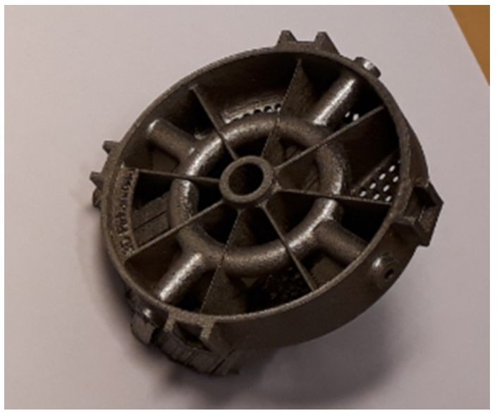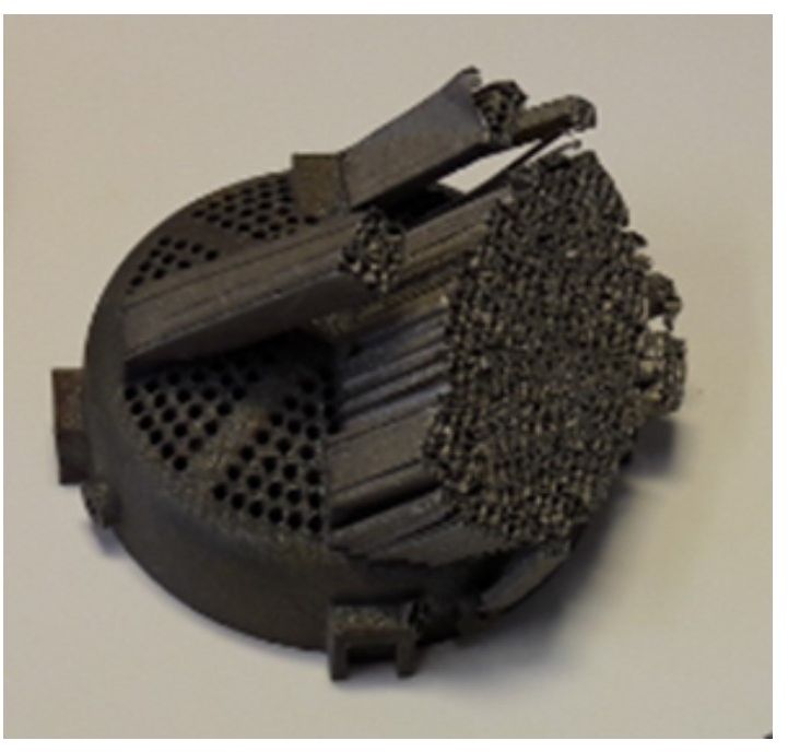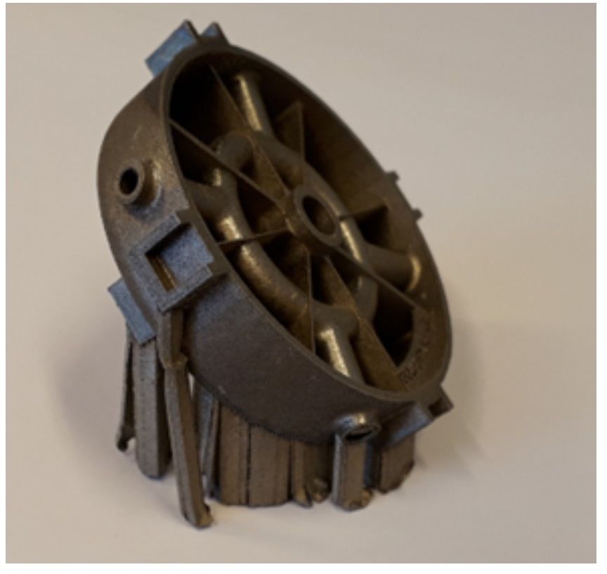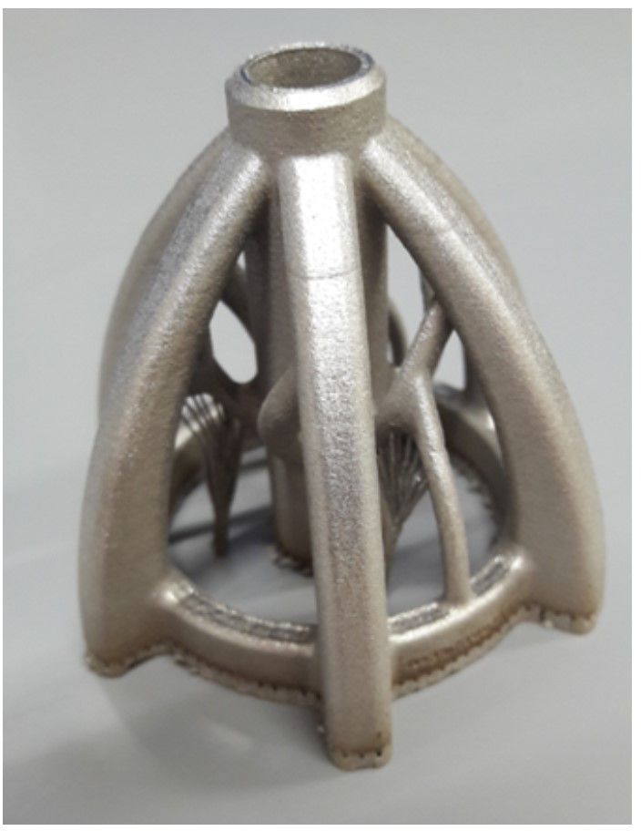 Kuva 3 SLM 125 HL -metallitulostimella tulostettu kappale, jonka materiaali on 316L. (Suunnittelu: Matti Peltola, TAMK) (Kuvat: Harri Laaksonen)