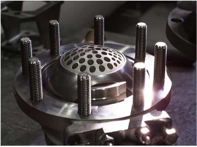 Kuva 6 Metson 3D-tulostettu antikavitaatio- ja äänenvaimennuselementti palloventtiiliin asennettuna. (Kuva: Metso)