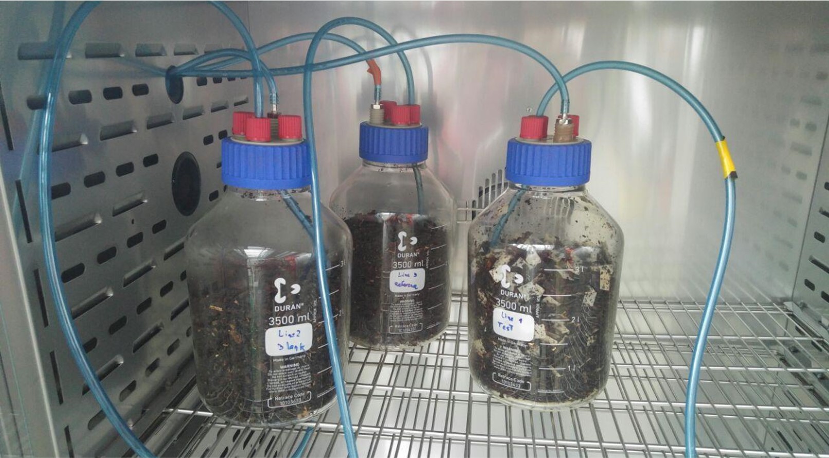 Kuva 1 Biohajoavuuskokeen toteutus laboratoriomittakaavassa (Eshragh Jahromi 2020)