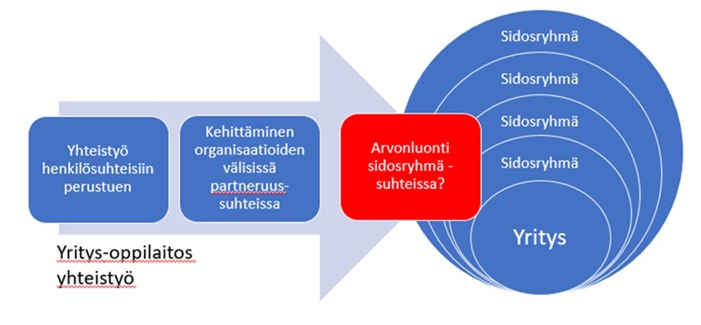 Innovaatioekosysteemien lisäksi tai niitä täydentämään voitaisiin kehittää pienten ja suurten yritysten ja oppilaitosten osaamisekosysteemejä. Tämä voisi antaa pienemmille yrityksille paremmat mahdollisuudet yhteistyöhön oppilaitosten kanssa osaamisen varmistamisessa. Olettaen, että sidosryhmäajattelu yrityksissä kehittyy kohti sidosryhmien välistä arvonluontia (Kujala ym. 2019) ja kuten tämä tutkimus indikoi, oppilaitokset ovat tulevaisuudessa tärkeitä yhteistyökumppaneita yritysten moniulotteisissa sidosryhmäympäristöissä.